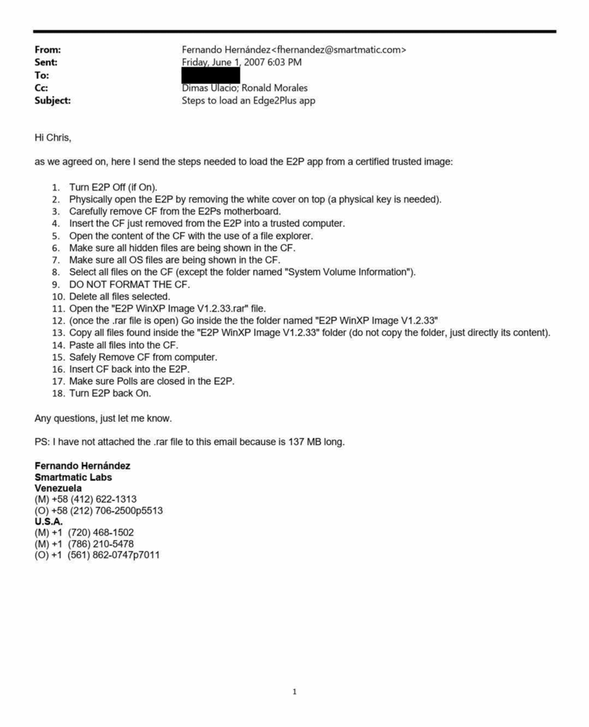 On June 1, 2007, Venezuelan representatives of Smartmatic reached out Sequoia representatives to provide guidance on how to deploy a “certified trusted image” of its election system onto Sequoia systems. It’s one simply email, but it tells a very interesting story if you know what to look for.